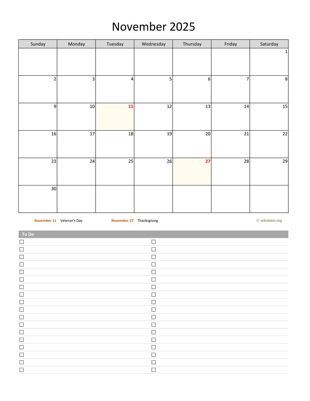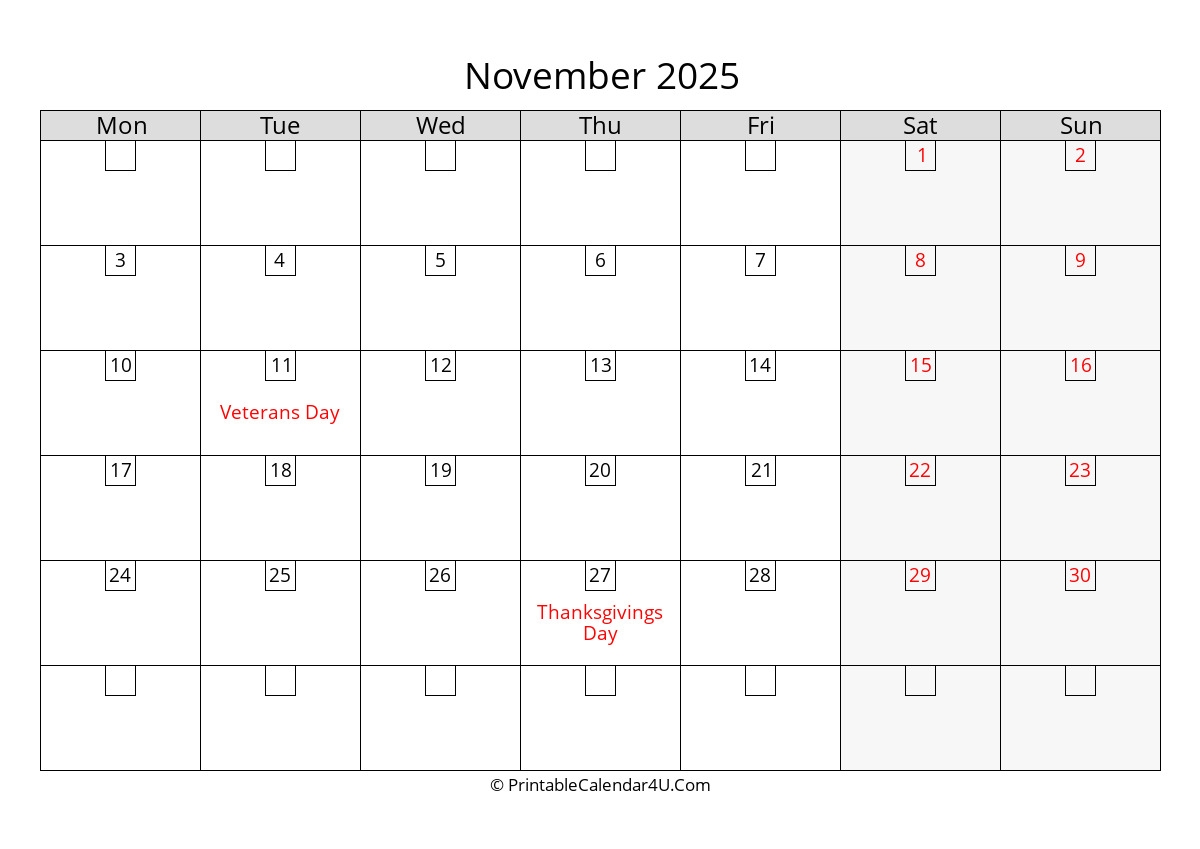 Free Printable November 2025 Calendar With Holidays Awesome Designs