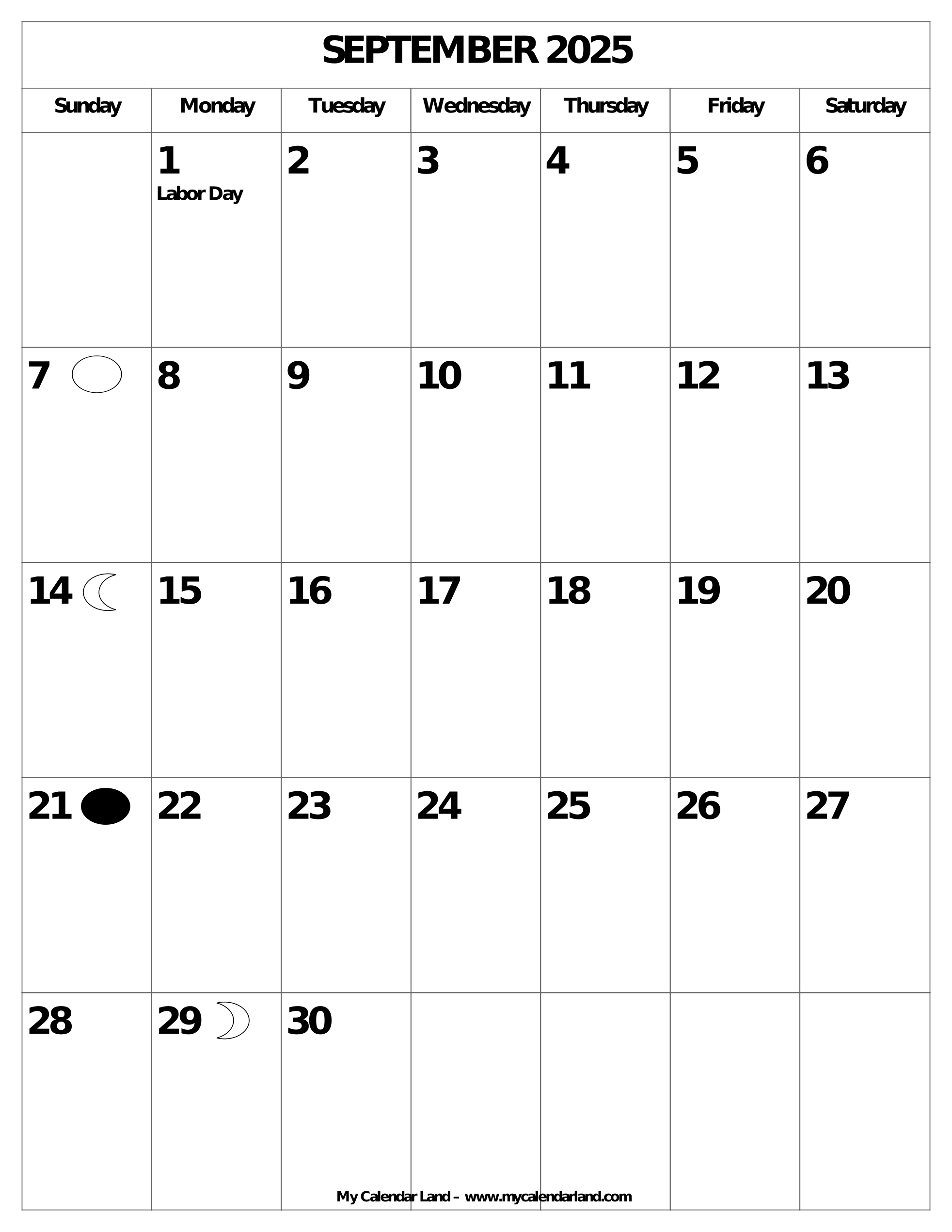 September 2025 Calendar My Calendar Land