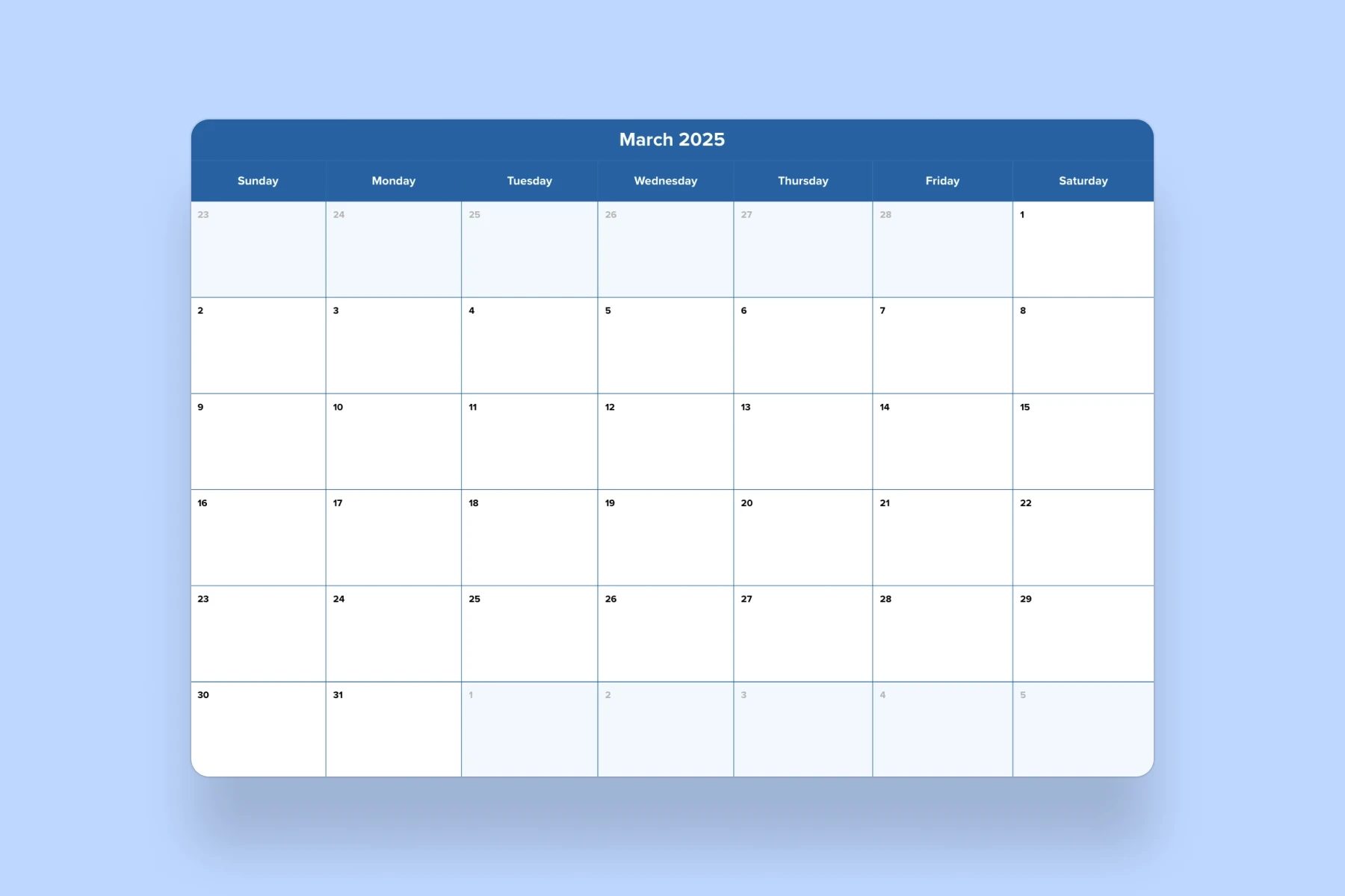March 2025 Calendar Template