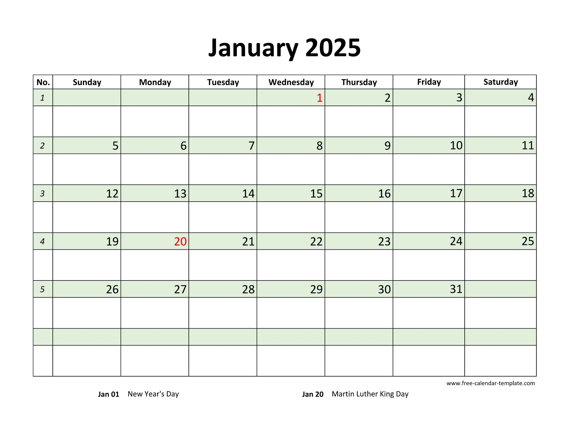 Free January 2025 Calendar Coloring On Each Day horizontal Free Calendar template