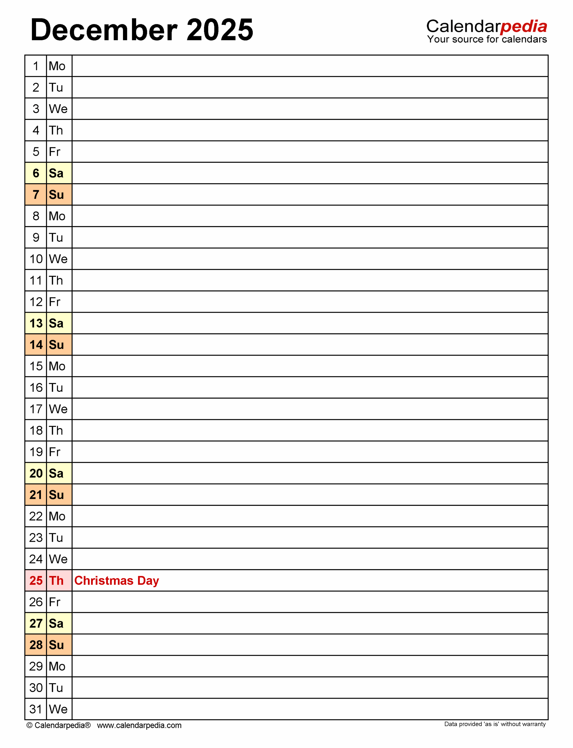 December 2025 Calendar Templates For PDF Excel And Word