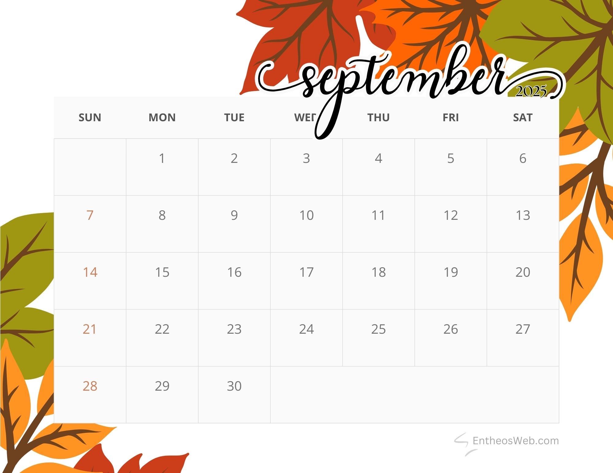 September 2025 Calendar Printables EntheosWeb