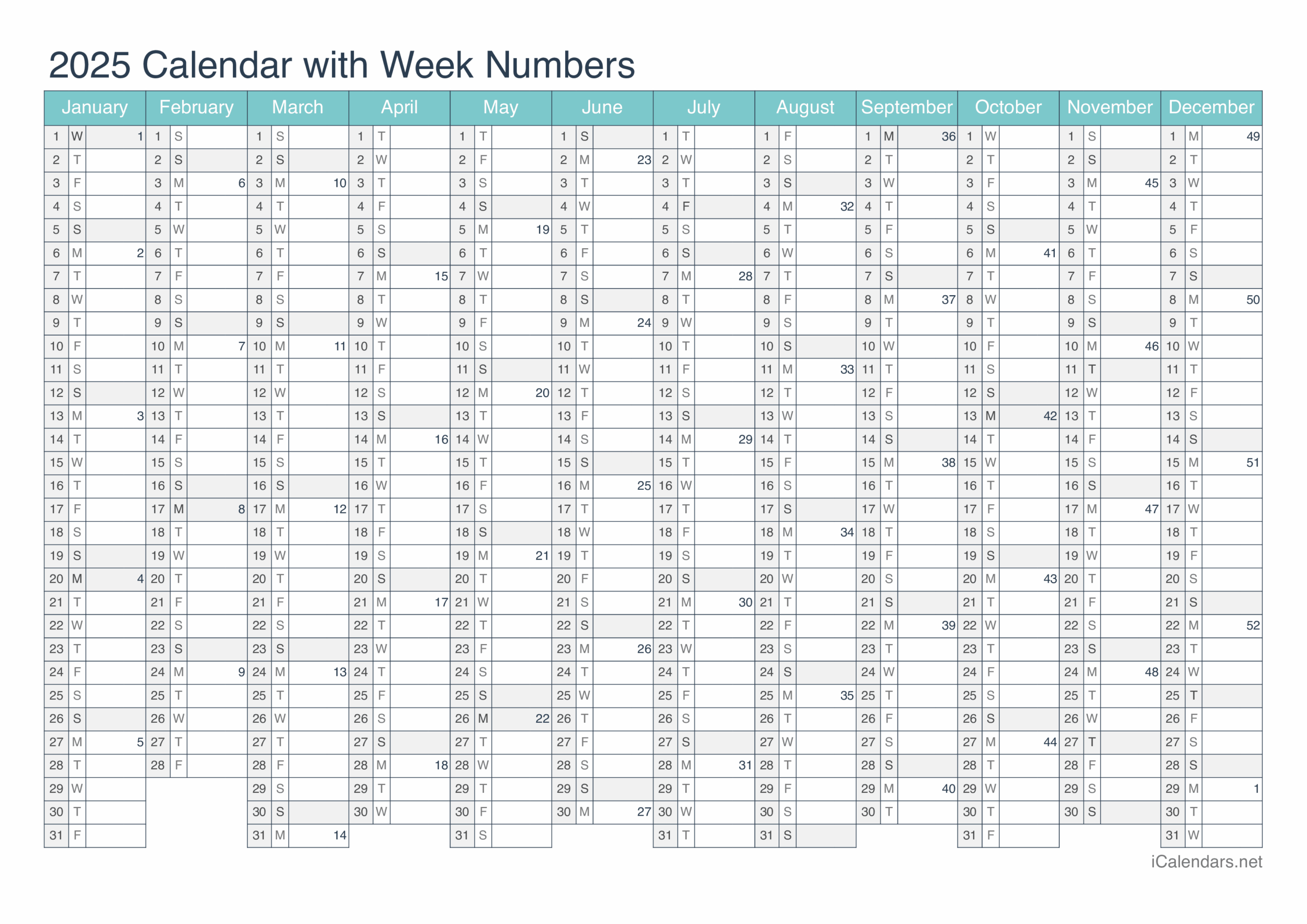 2025 Printable Calendar PDF Or Excel