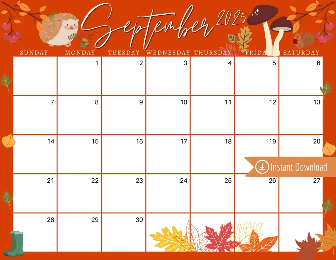 September 2025 Digital Calendar Orange Harvest Leaves Planner Editable Fillable Printable Calendar For Planning PDF PNG And JPG Download Etsy
