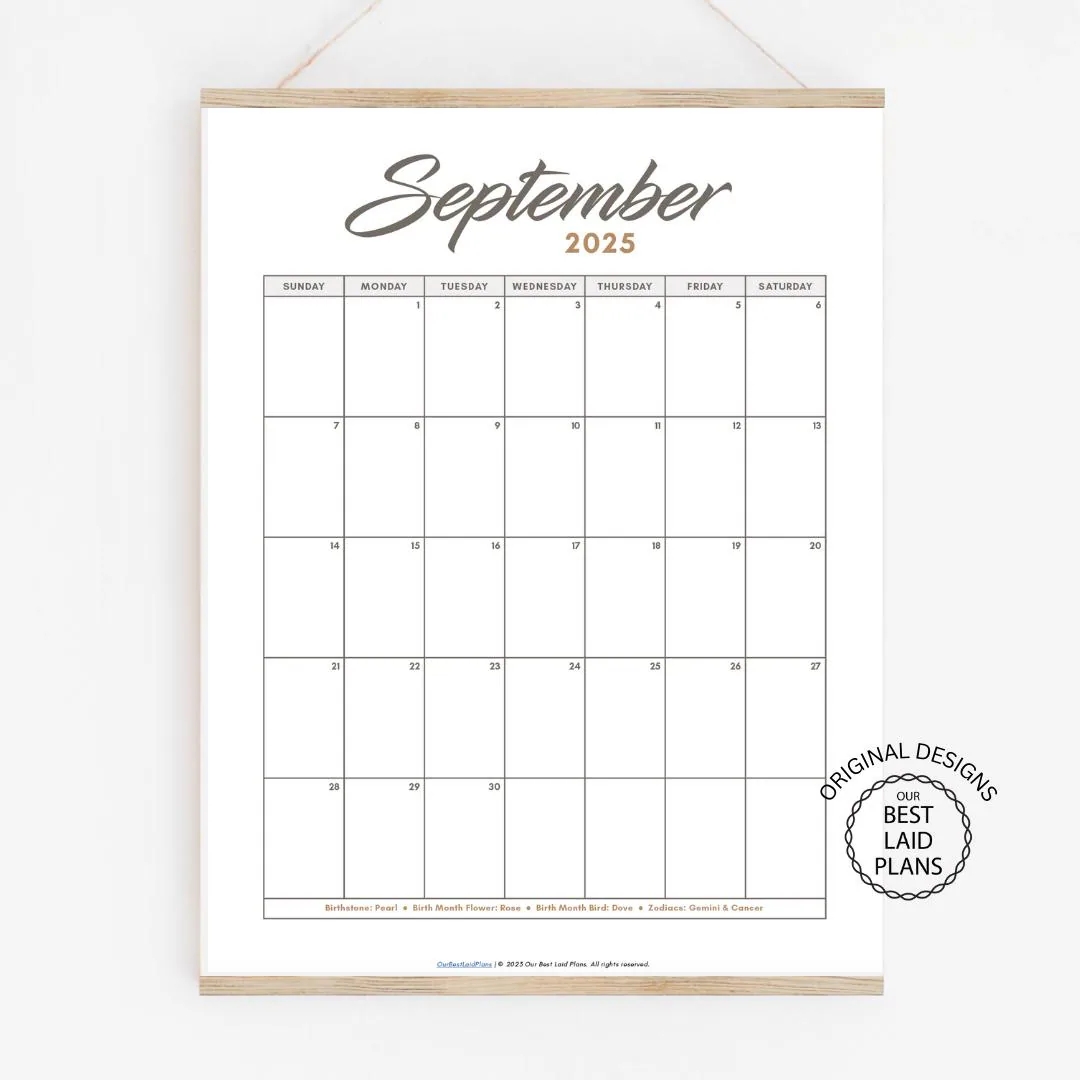 September 2025 Printable Calendar Printable Party Favors