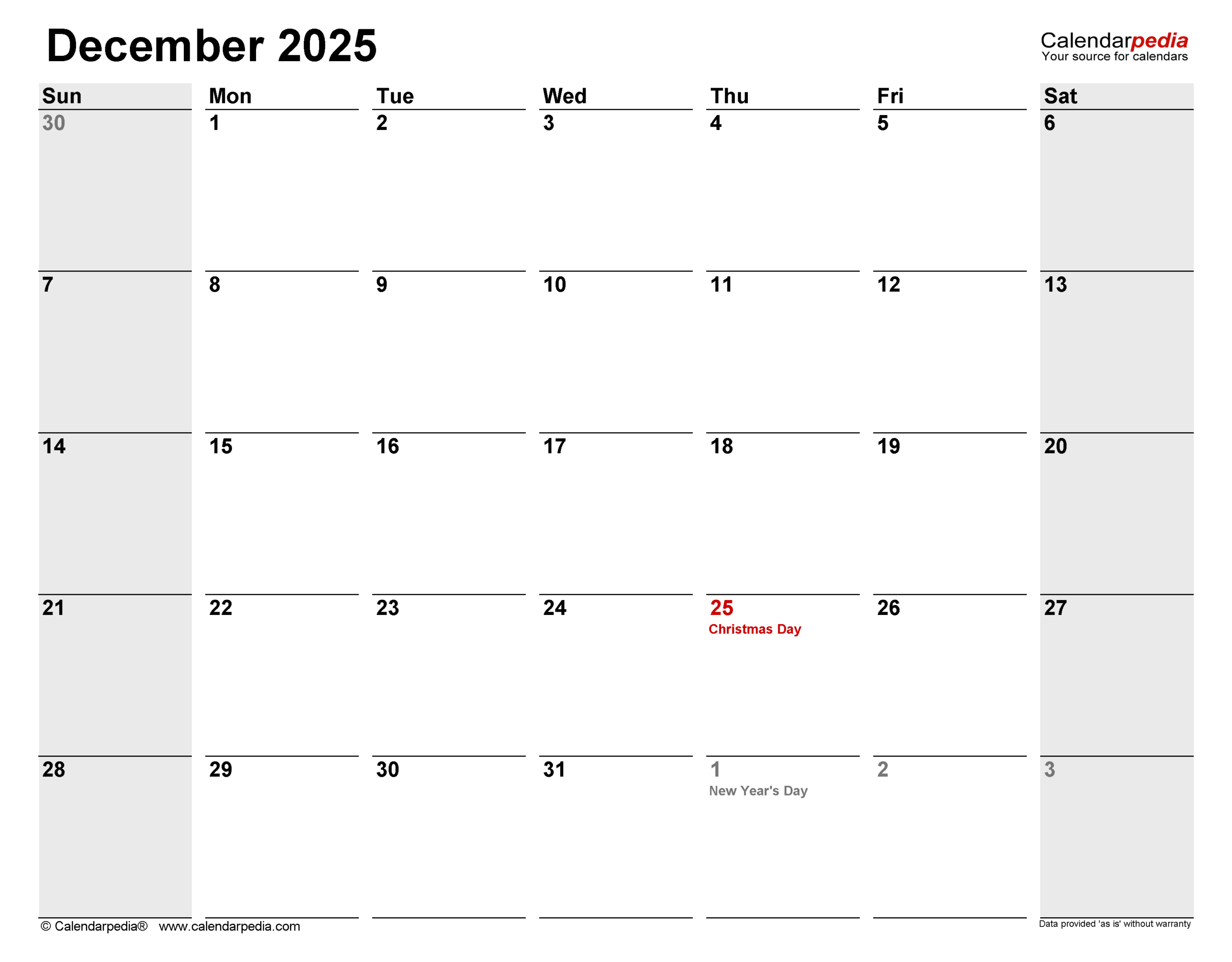 Blank December 2025 Calendar Downlaod