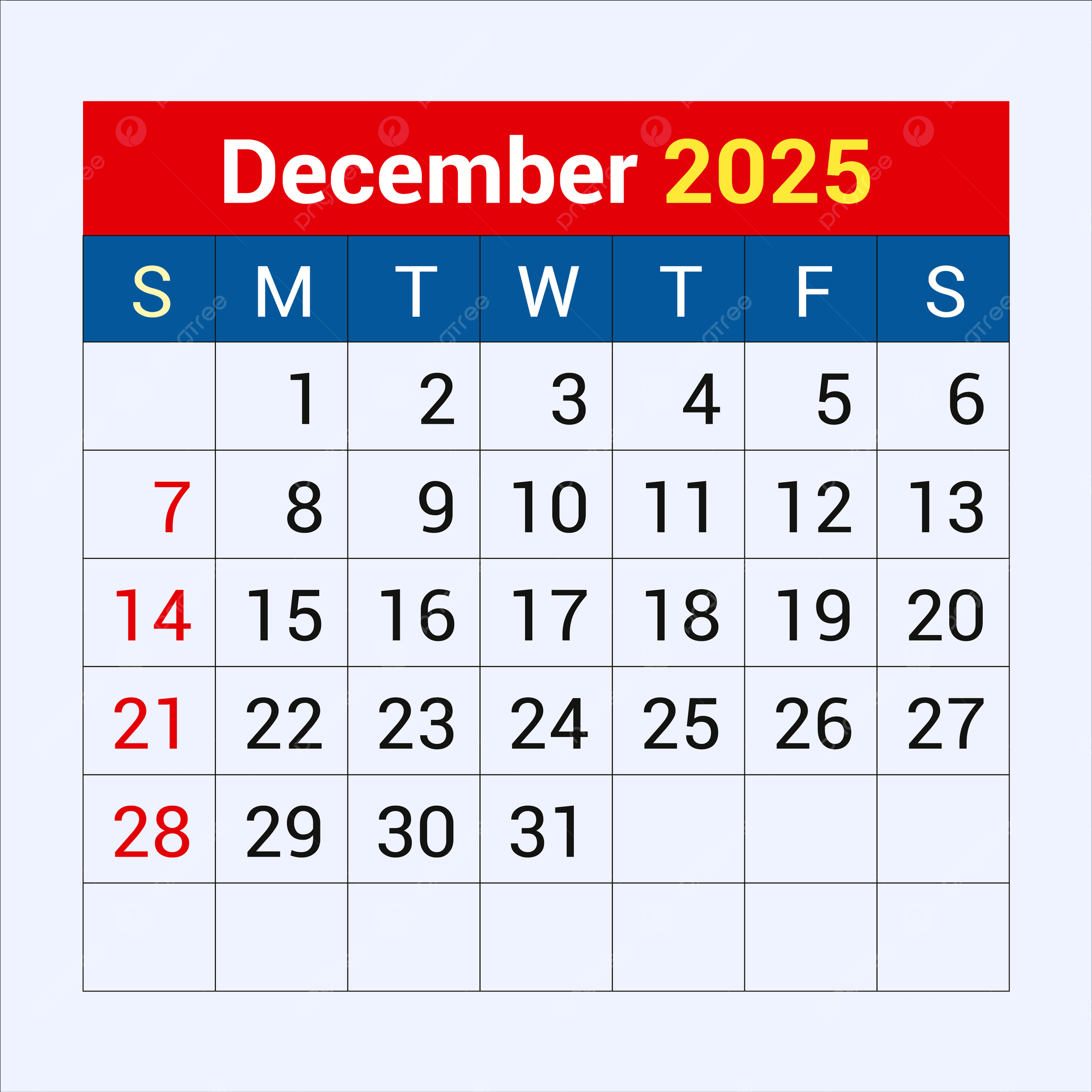 December Calendar 2025 Vector Template Download On Pngtree