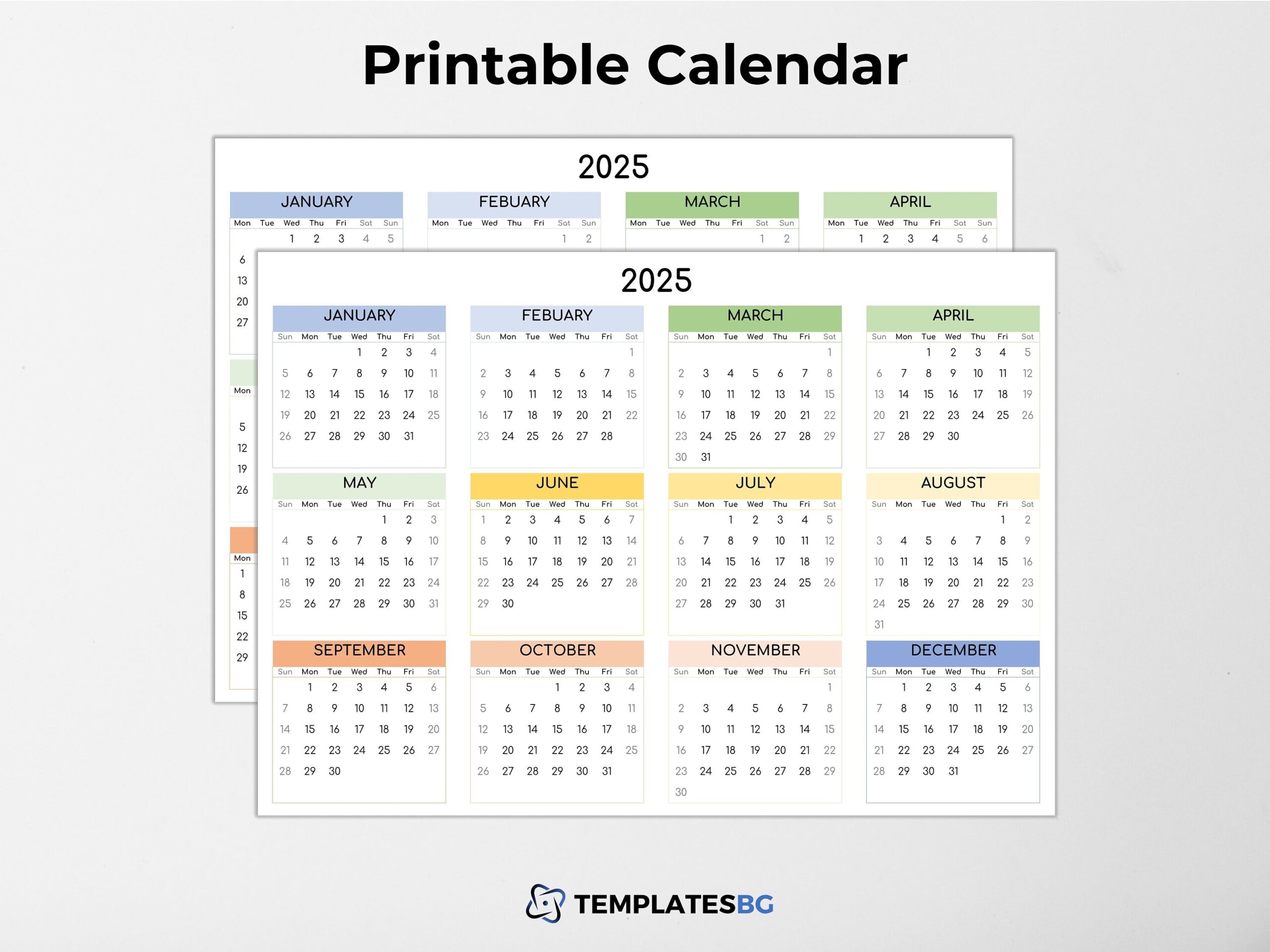 Calendar 2025 PDF Yearly Calendar Template Printable Calendar Blank Calendar 2025 Calendar Excel Template Etsy