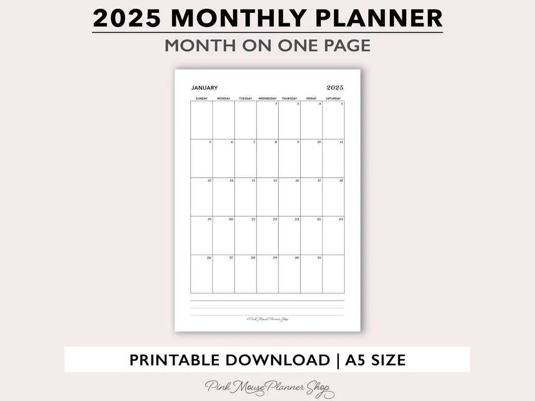2025 Monthly Printable Planner Inserts Month On One Page Calendar Template Monthly Calendar With 1 Page Per Month For A5 Planners MO1P Etsy