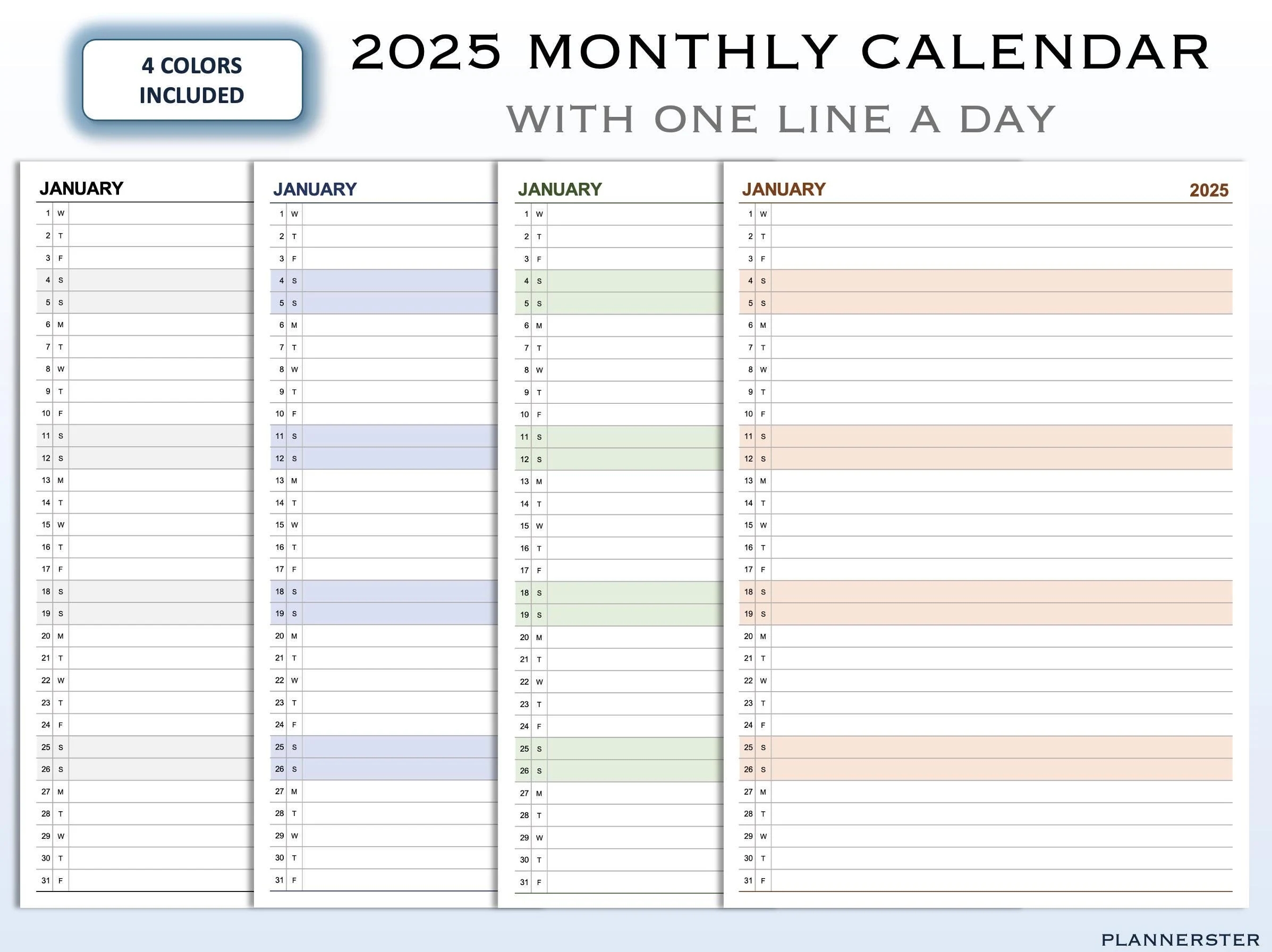 2025 Printable Monthly Calendar Simplify Your Year Ahead One Line A Day 2025 Monthly Overview 4 Color Options Etsy
