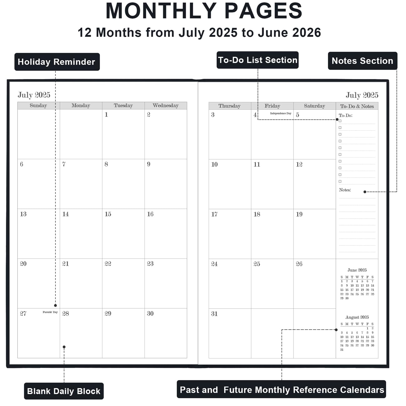 Amazon 2025 2026 Daily Monthly Planner 2025 2026 Academic Year Planner One Page Per Day From July 2025 To June 2026 Hourly Appointment Book Perfect Organizer Daily Life Fabric Cover