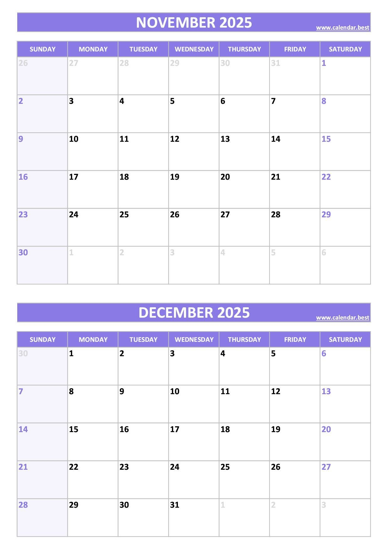 Moreover, having a physical copy of a blank calendar for November and December 2025 can reduce screen time and minimize distractions. You can hang it on your wall, place it on your desk, or carry it in your bag for quick and easy reference wherever you go.