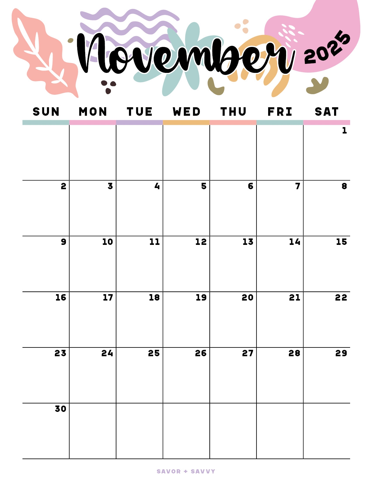 November 2025 Calendar Templates 14 Free Printables Savor Savvy
