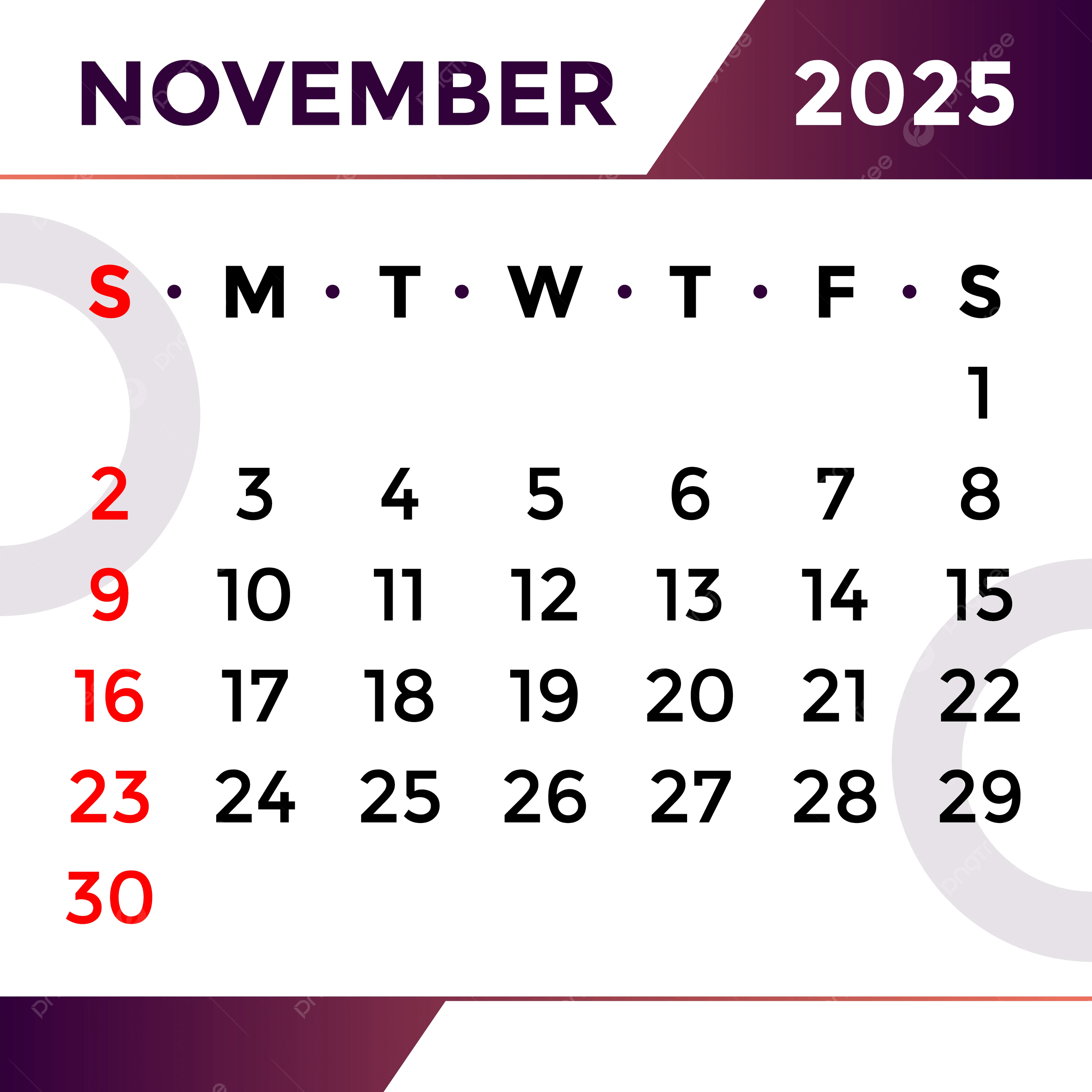 November Month Calendar 2025 Vector Template Download On Pngtree