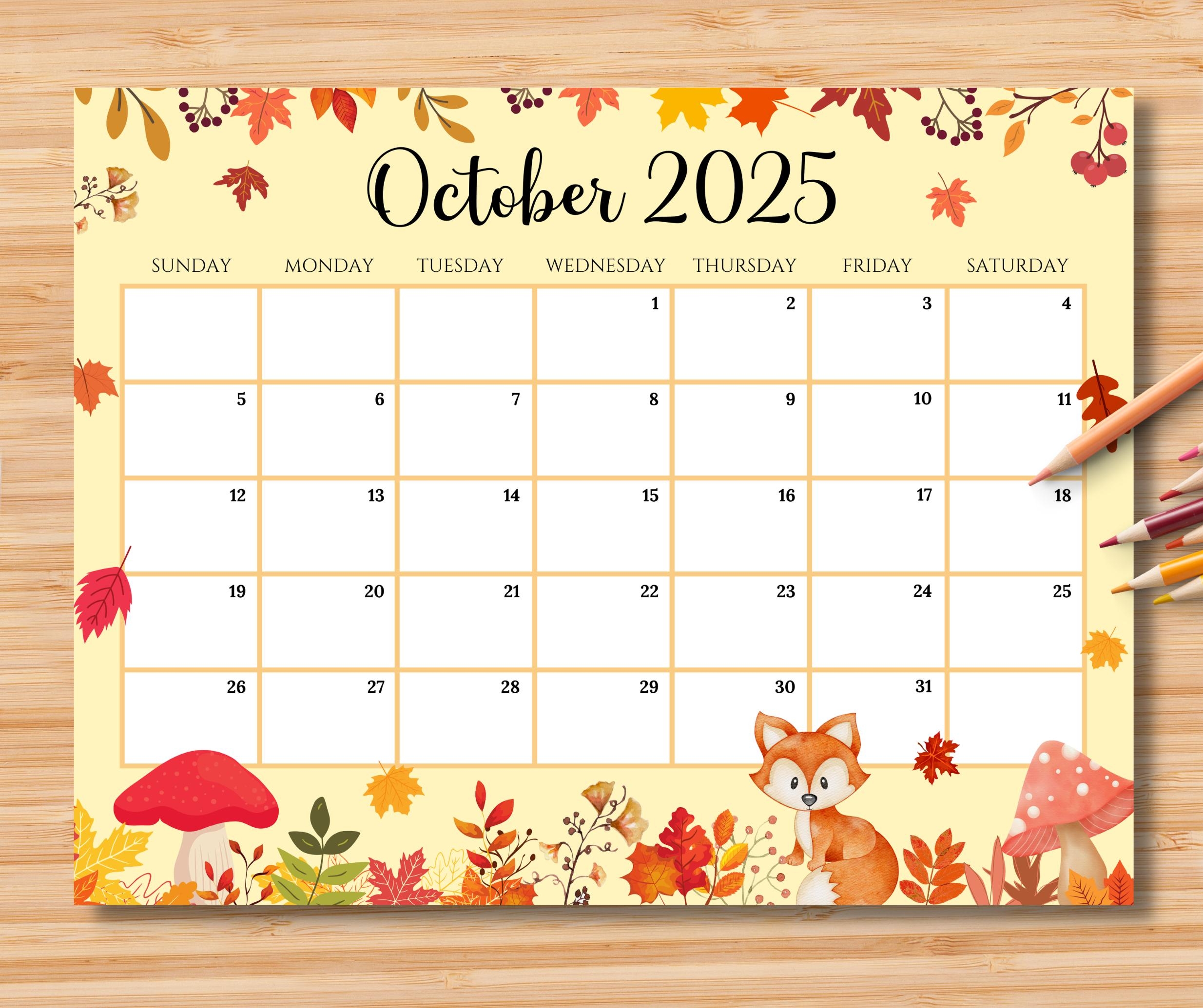 EDITABLE October 2025 Calendar Beautiful Autumn With Colorful Pumpkins Planner Printable Monthly Calendar For Kid School Home Work Office Etsy