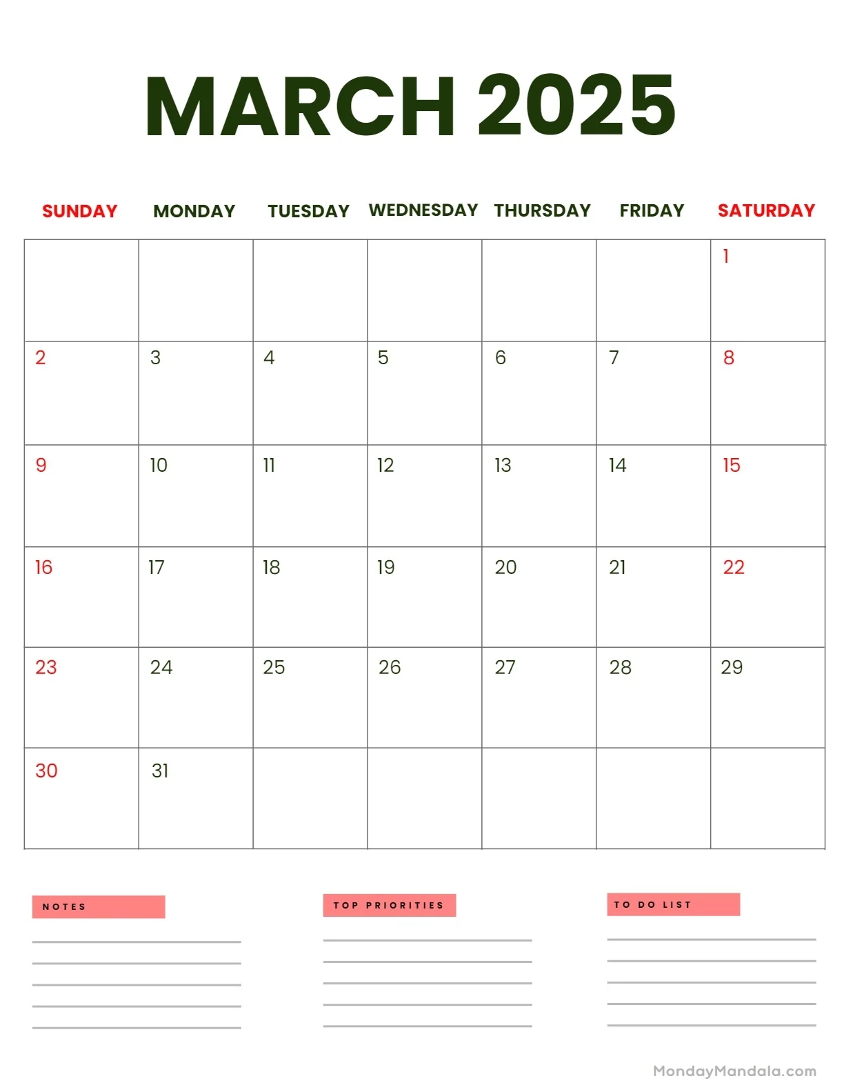 March 2025 Calendar My Calendar Land