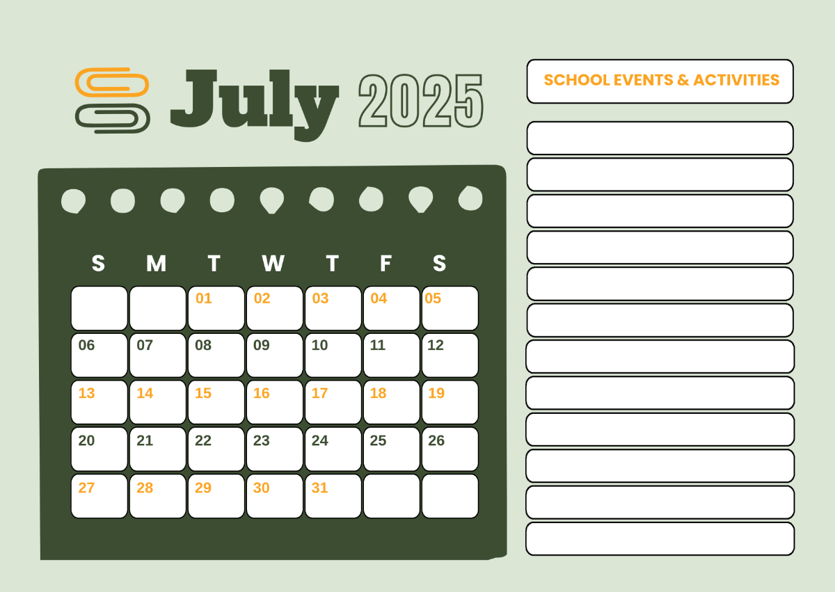 Free July 2025 School Calendar Template To Edit Online