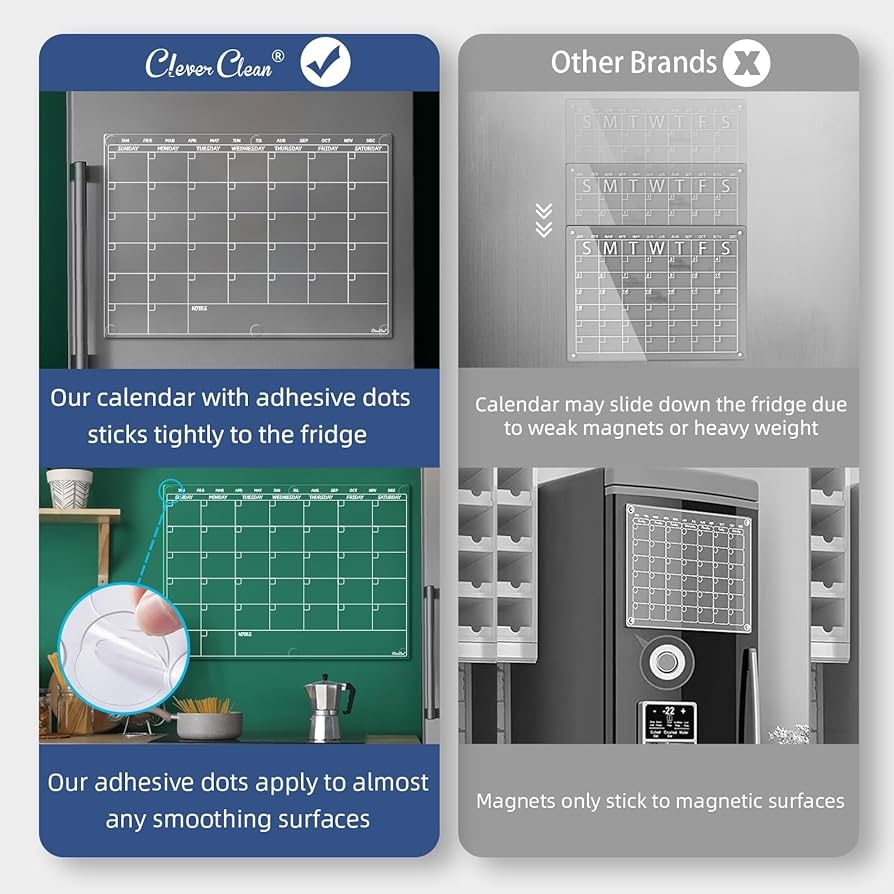Amazon Clear Non Magnetic Calendar Set For Fridge 17 x12 Dry Erase Transparent Monthly Weekly Calendar And Blank Board Sticks To Wall Glass Door Any Smooth Surfaces Office Products