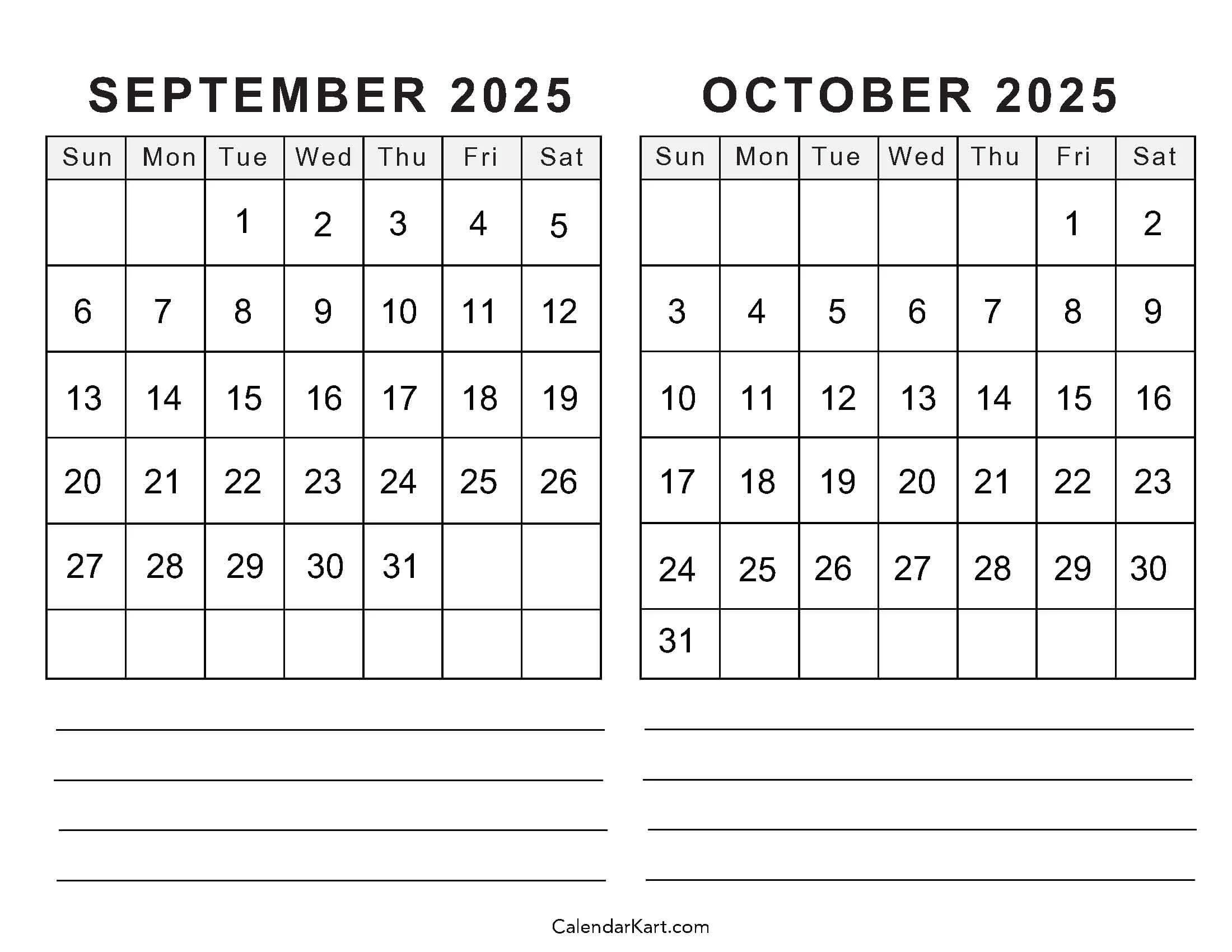 Blank September October 2025 Calendar