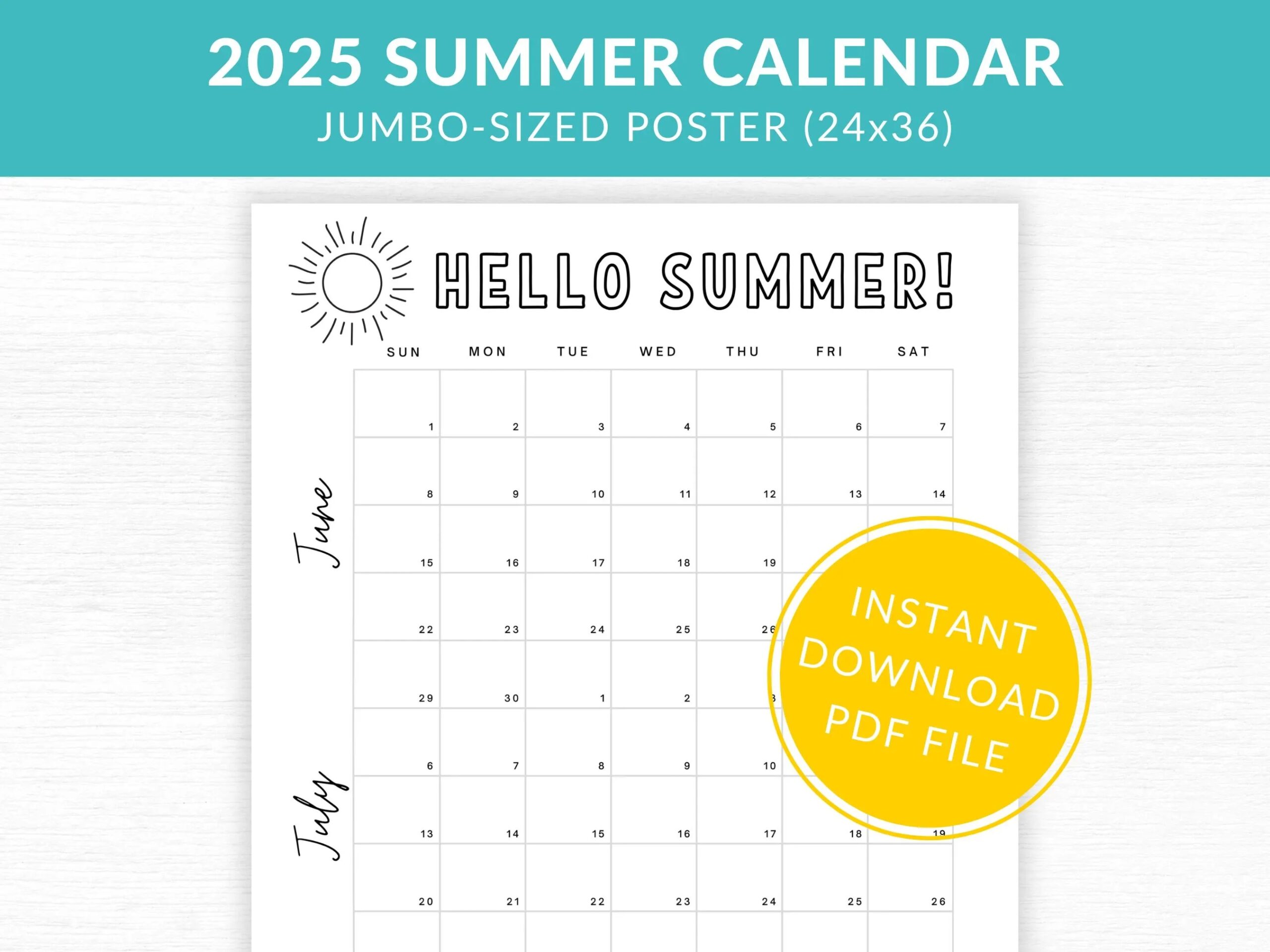 Giant Printable Summer Calendar 2025 PDF Download Etsy Canada