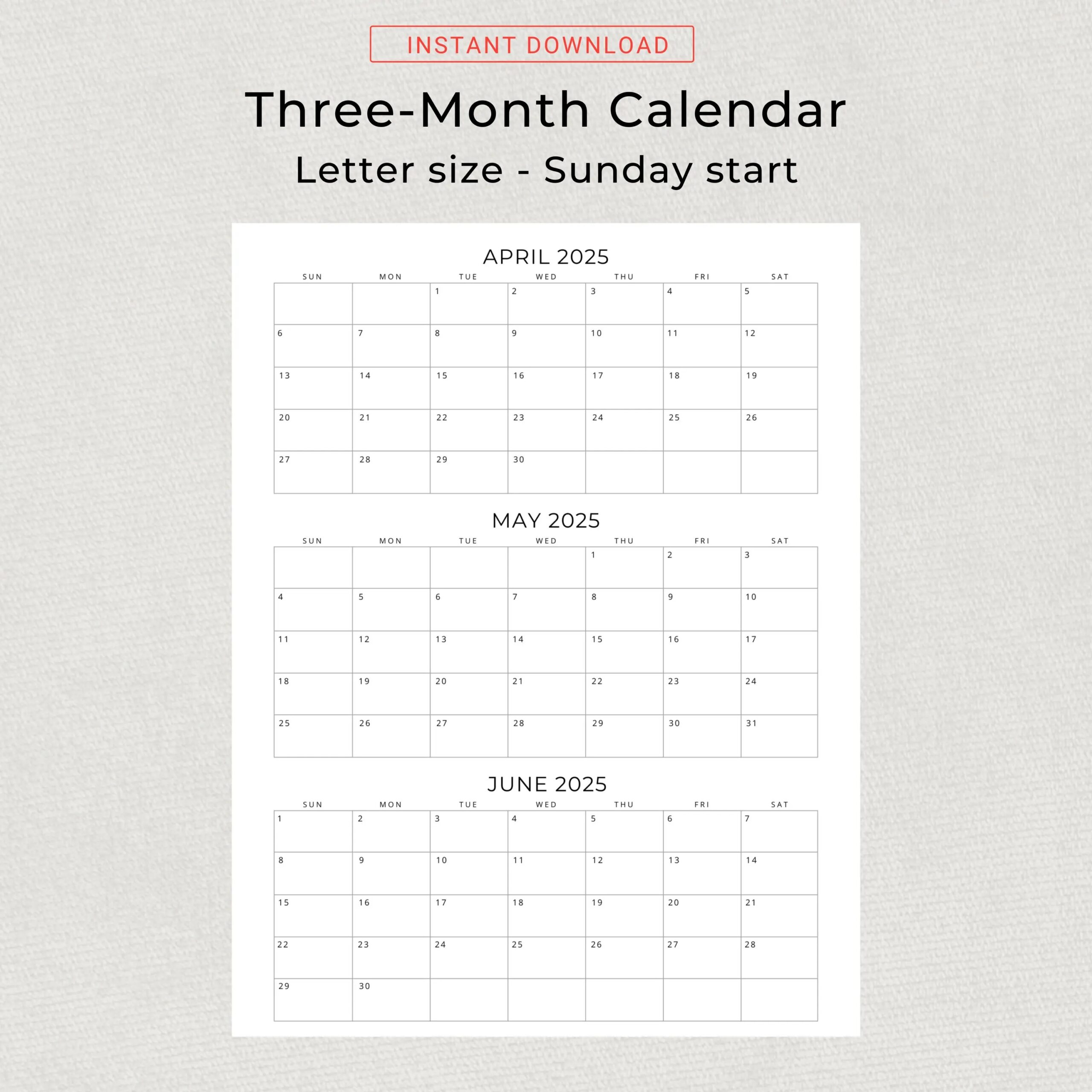 2025 3 Months Per Page Calendar Printable 2025 Monthly Calendar 2025 Monthly Planner Quarterly Work Planner Desk Or Wall Calendar PDF 2025 Etsy