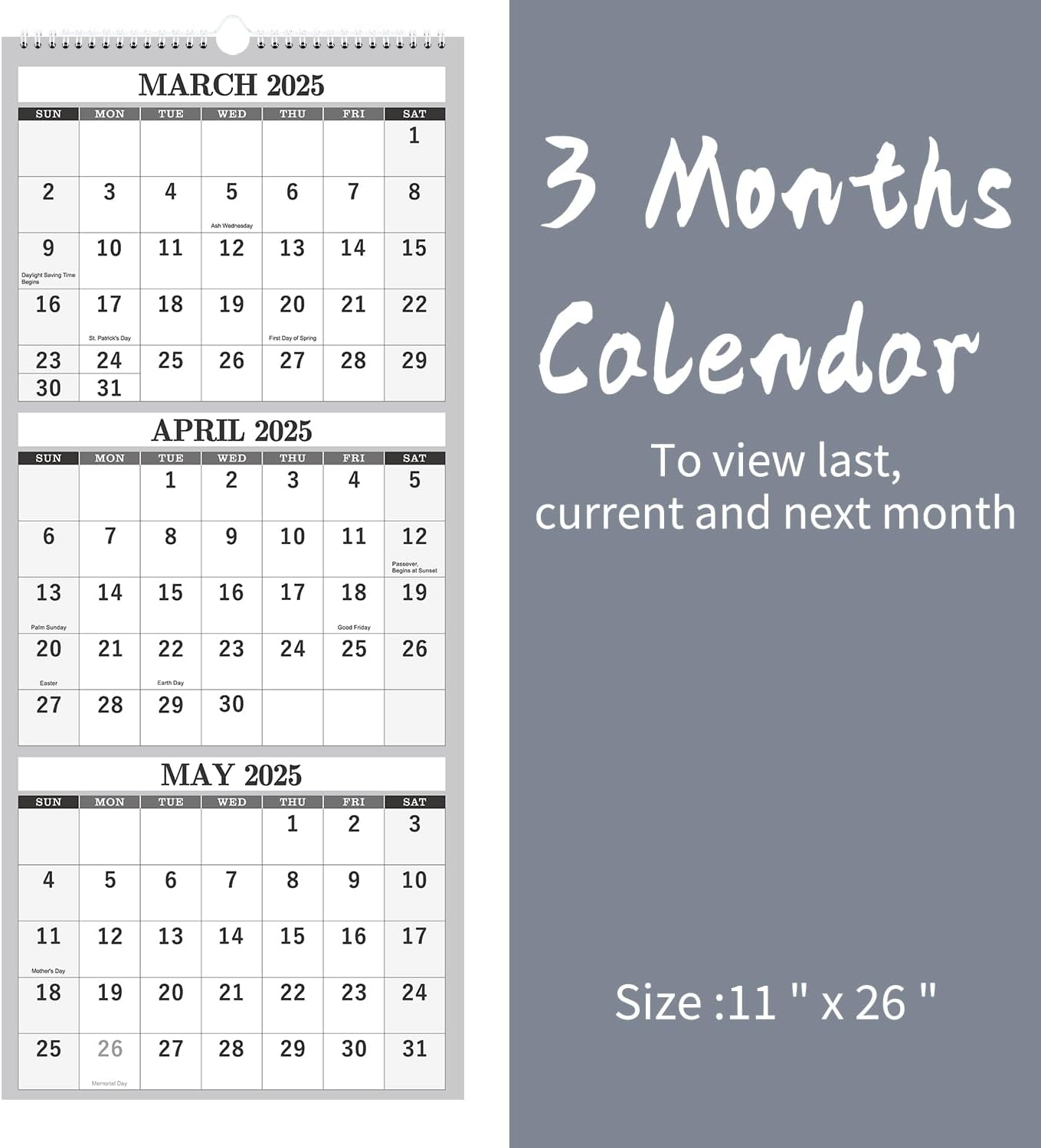 Large Calendar For Wall 2025 2026 Wall Calendar 3 Month Calendar 2025 2026 Vertical Apr 2025 2025 Wall Calendar 2 Month View