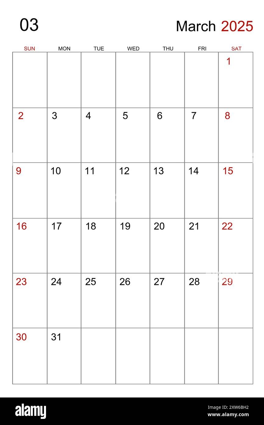 March 2025 Calendar Vertical Template On White Background Stock Photo Alamy