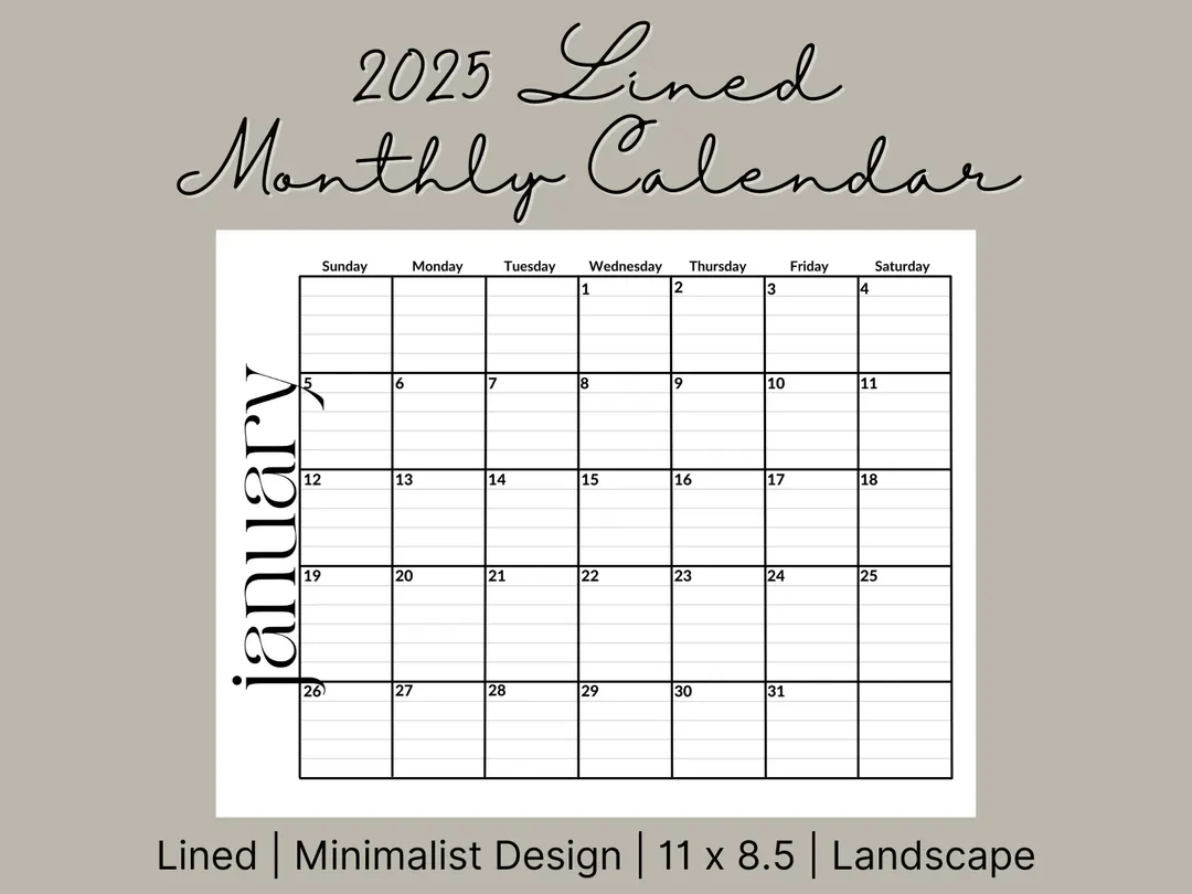 2025 Lined Monthly Calendar Printable Minimalist Teacher friendly Landscape PDF For Easy Planning Printable 2025 Monthly Calendar Etsy