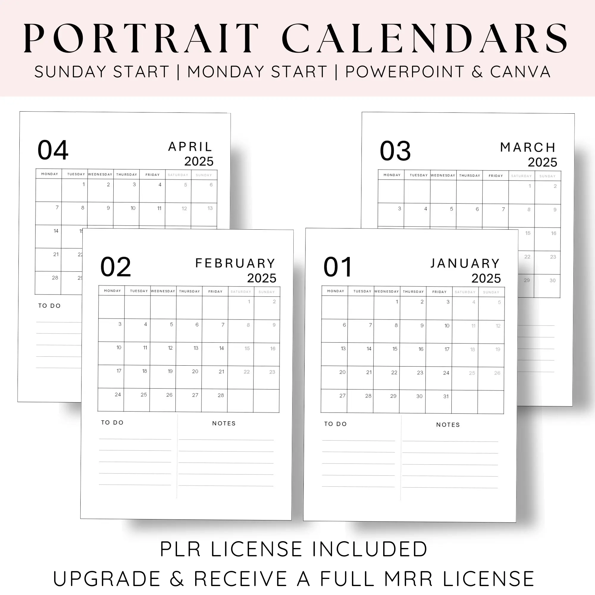 Blank Weekly Calendar 2025 Portrait