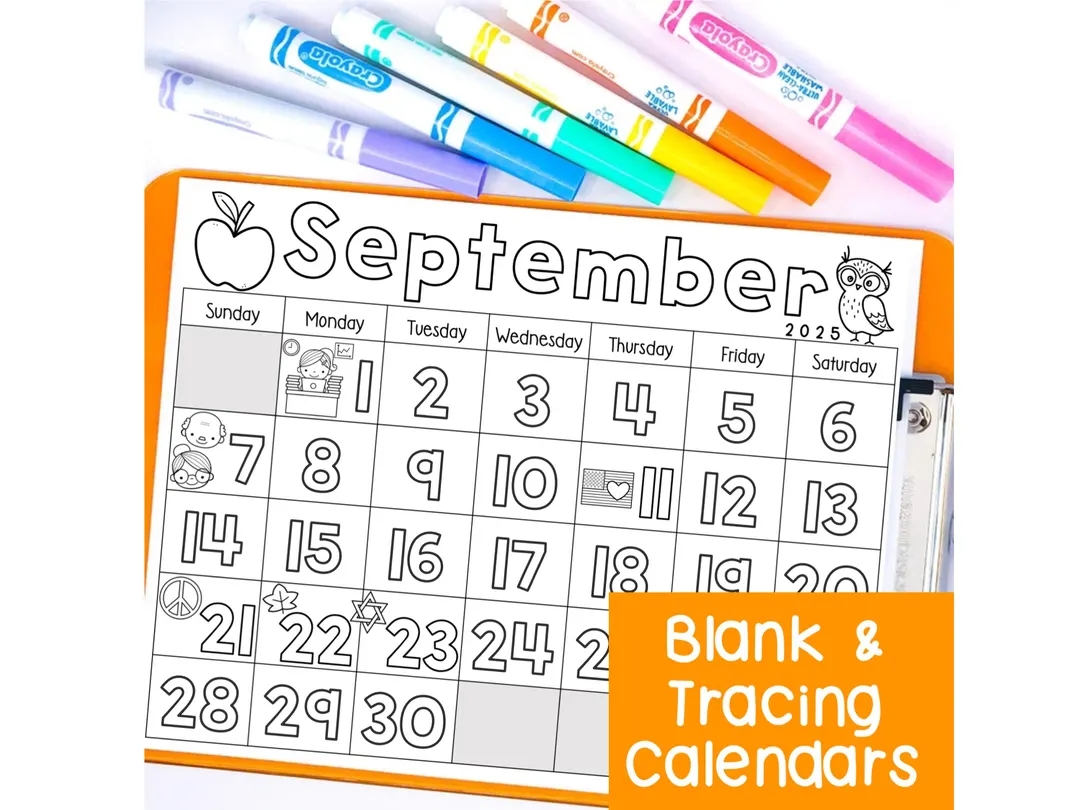 September Calendar 2025 Printable Calendar Tracing Worksheets Calendar Traceable Kindergarten Blank Calendar Template September 2025 Etsy