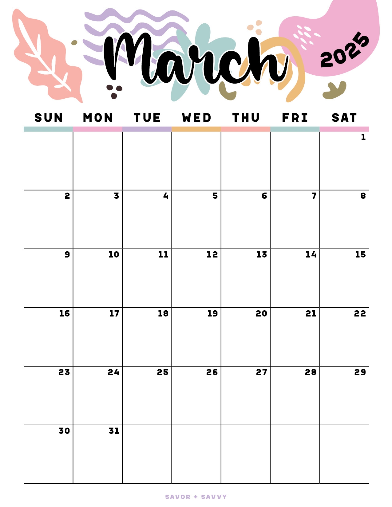 March 2025 Calendar Templates 14 Free Printables Savor Savvy