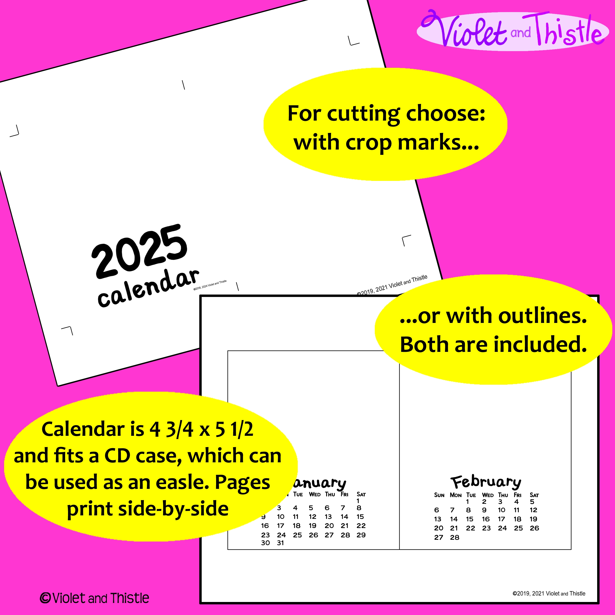 2025 Calendar CD CASE SIZE Printable Parent Christmas Gift For Parent Borderless Draw CD A Made By Teachers
