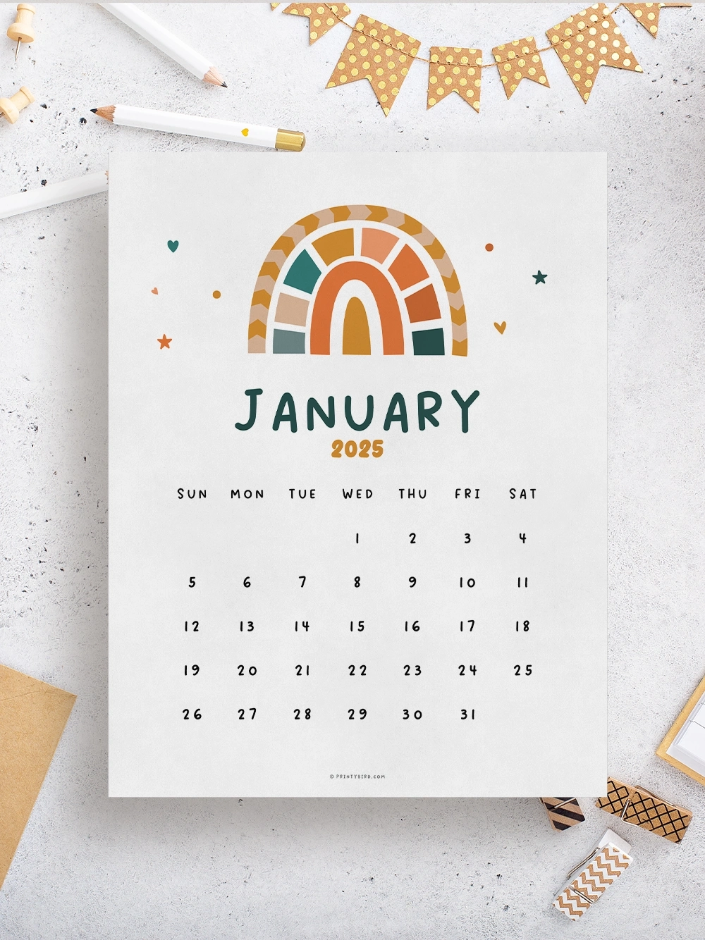 Cute Boho Rainbow Calendar 2025 PrintyBird