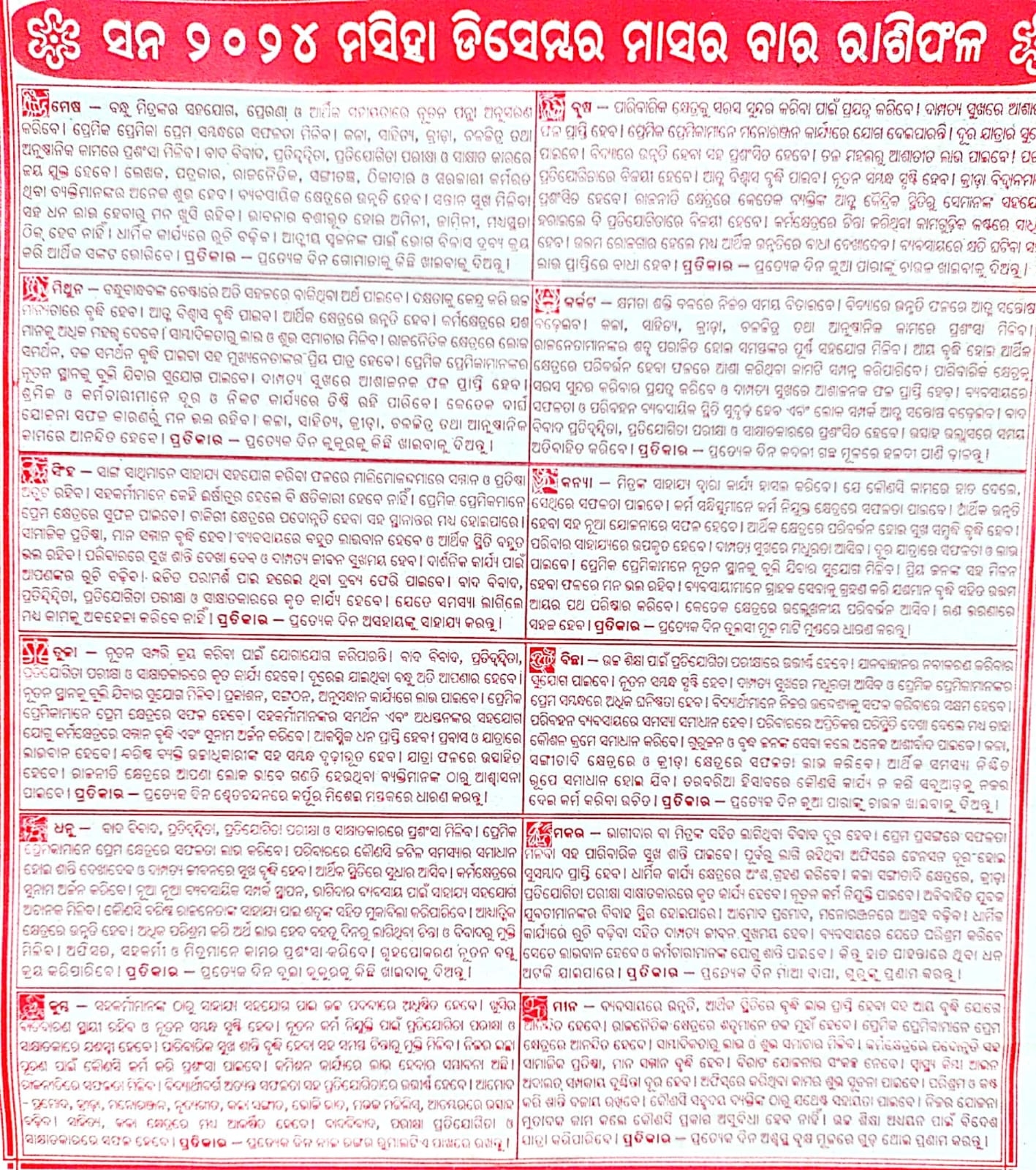December 2025 Odia Calendar