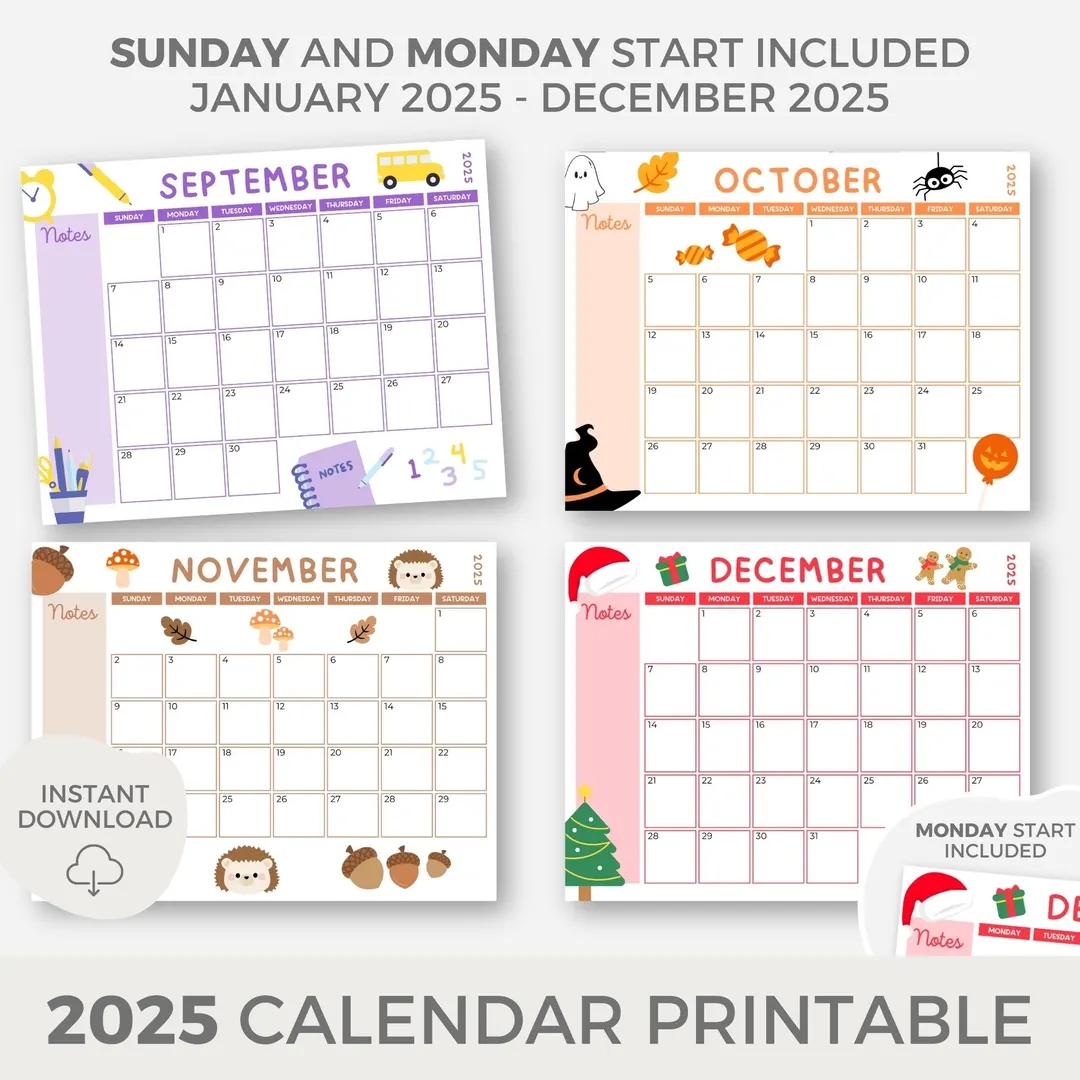 2025 Kids Printable Calendar Printable Calendar For Children Kids Monthly Planner Monthly Calendar Homeschool Calendar Cute Calendar Etsy