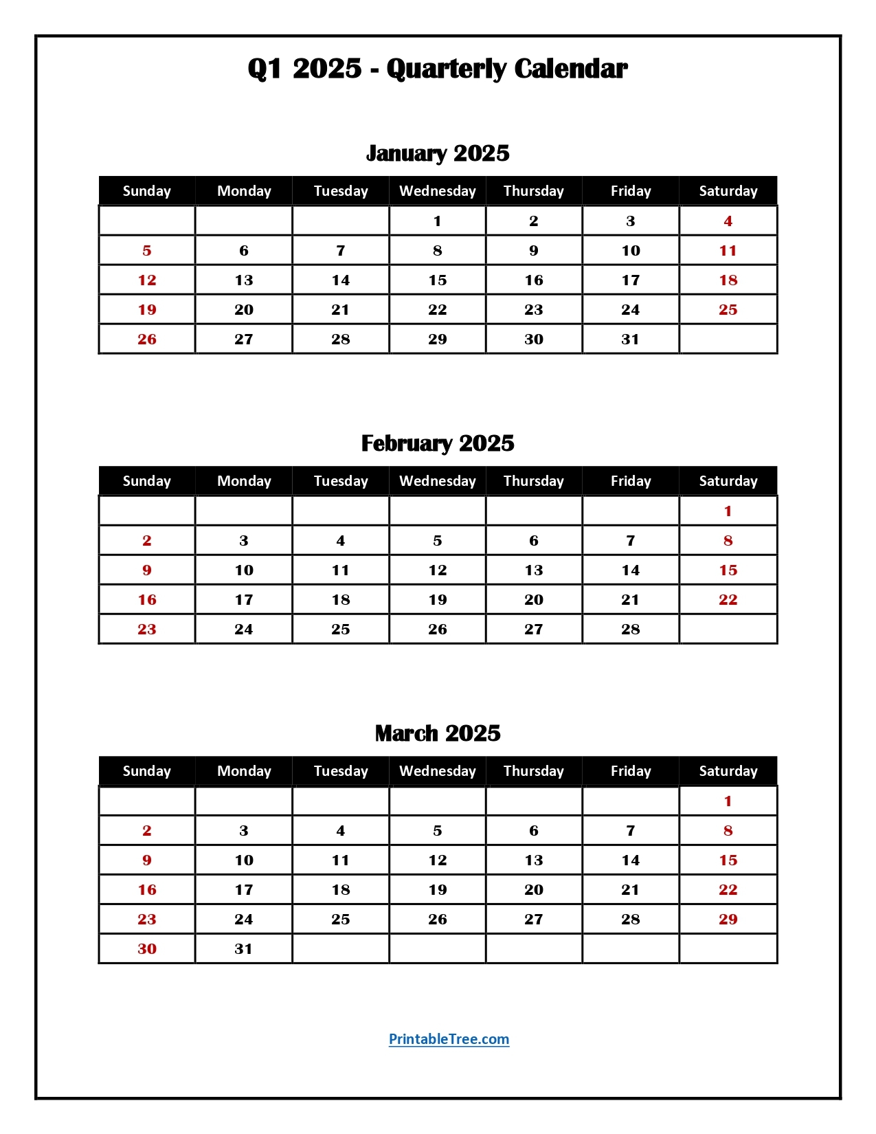 Quarterly Calendar 2025 Free Printable PDF Templates