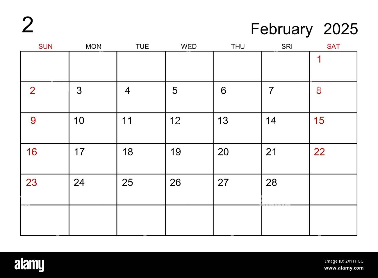 February 2025 Calendar Template On White Paper Background Stock Photo Alamy