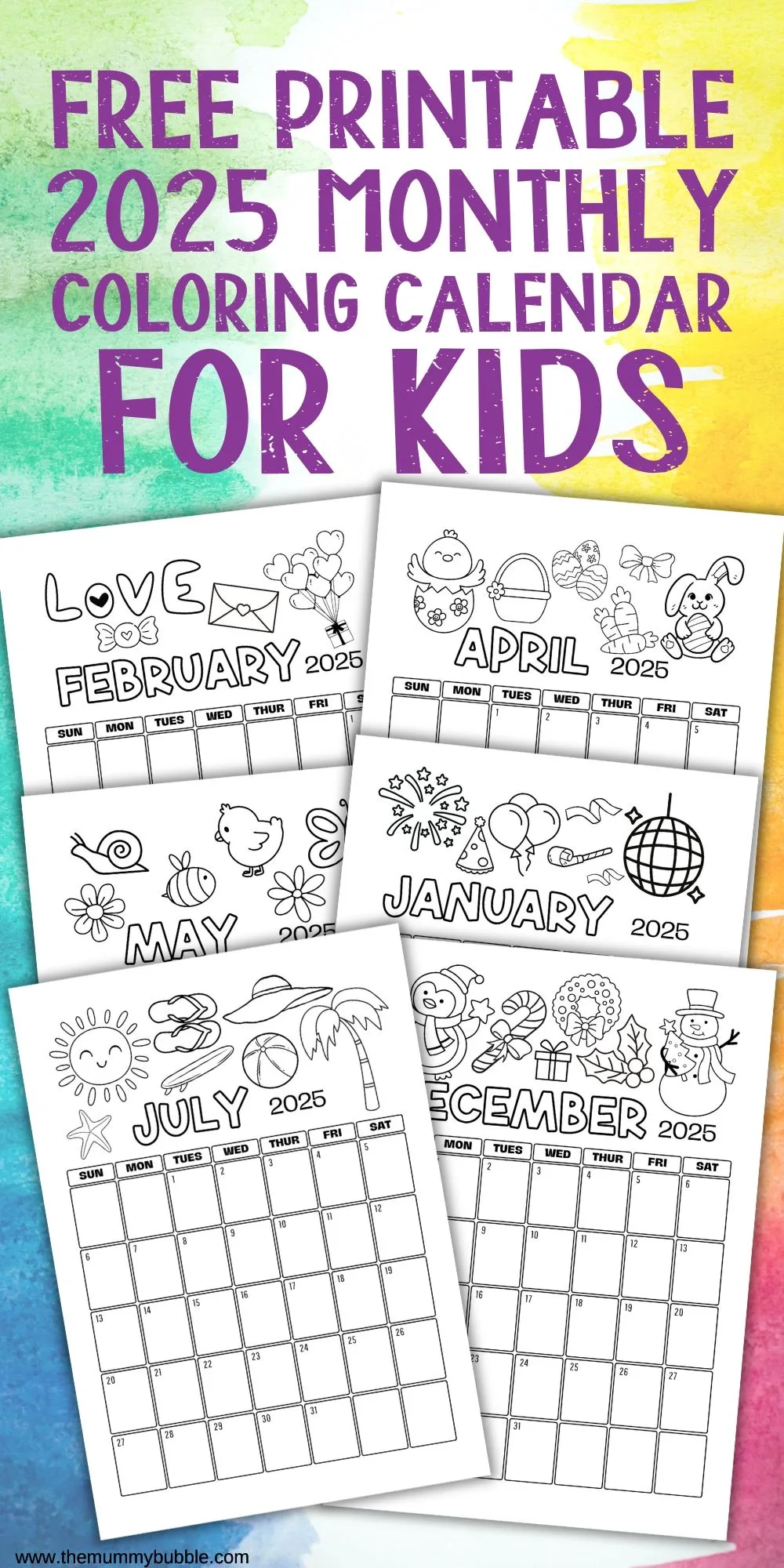 Monthly Colouring Calendar 2025 Printable The Mummy Bubble