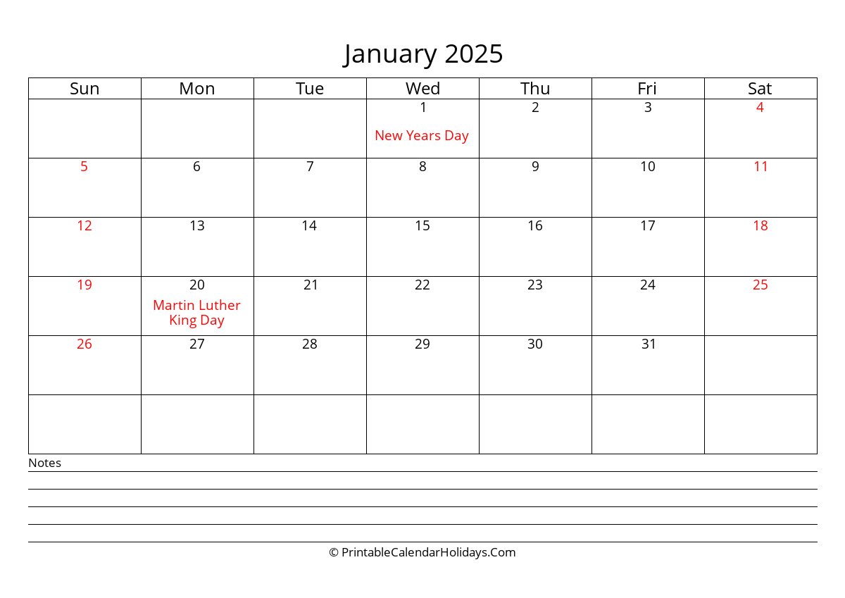 January 2025 Calendars PrintableCalendarHolidays Com