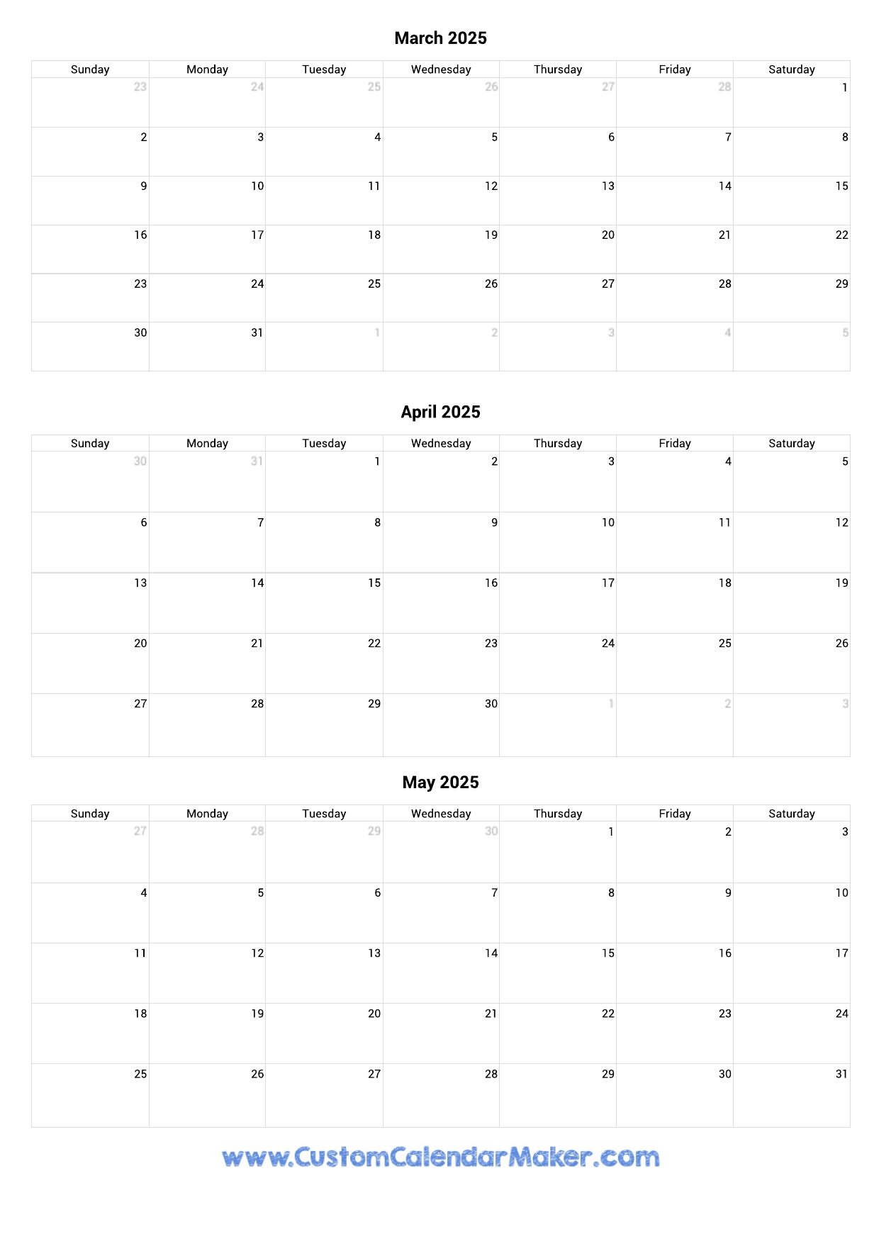 March To May 2025 Calendar Printable Custom Calendar Maker