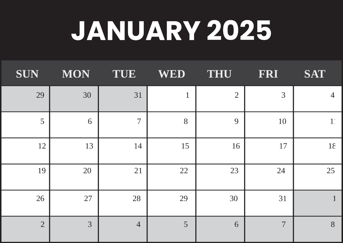 Free Black And White January 2025 Calendar Template To Edit Online
