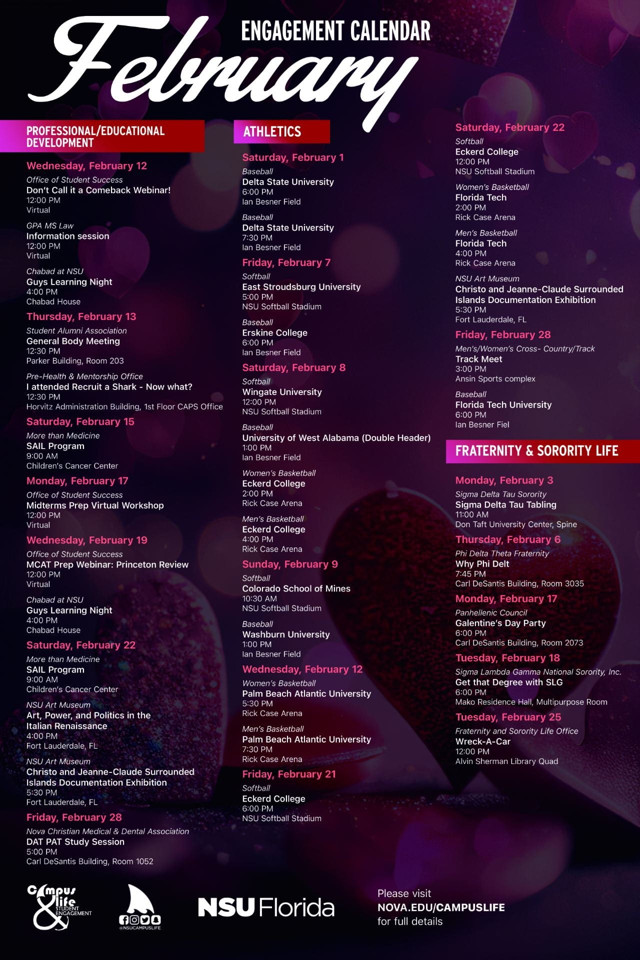 February Engagement Calendar NSU SharkFINS