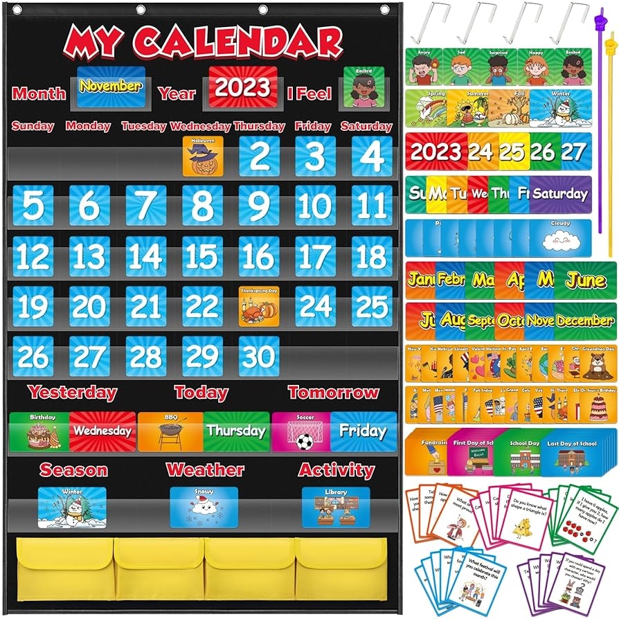Amazon Aizweb Classroom Calendar Pocket Chart Monthly Calendar For Kid Preschool Kindergarten Classroom Elementary Must Haves Classroom Decorations Decor Homeschool Teacher Supplies Back To School Supplies Office Products